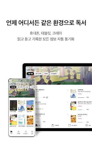 이 전자책 앱 하나로 스마트폰, 패블릿 및 태블릿, e-ink 등 다양한 기기에서 최적화된 뷰어 해상도로 전자책을 읽을 수 있습니다.