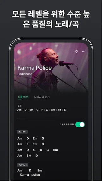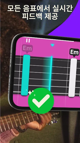 이 앱의 주요 장점은 사용자가 연주하는 음을 즉시 인식하여 피드백을 제공하며, 지속적으로 새로운 곡과 레슨이 추가되어 학습이 지속적으로 이루어진다는 점입니다. 기타 기초부터 코드 전환, 스트로크 기법, 타브 악보 읽기까지 다양한 내용을 포함하고 있어, 기타 스킬을 효과적으로 향상시킬 수 있습니다.