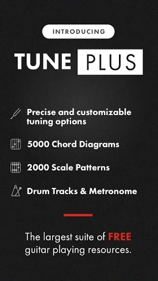 이 앱은 기타 연주를 돕기 위해 5000개 이상의 인터랙티브 코드와 2000개 이상의 스케일을 제공하며, 드럼 트랙과 메트로놈 기능도 포함되어 있어 연습을 더욱 풍부하게 만들어줍니다. 또한, Tune Plus를 통해 고급 기능을 추가로 이용할 수 있습니다.