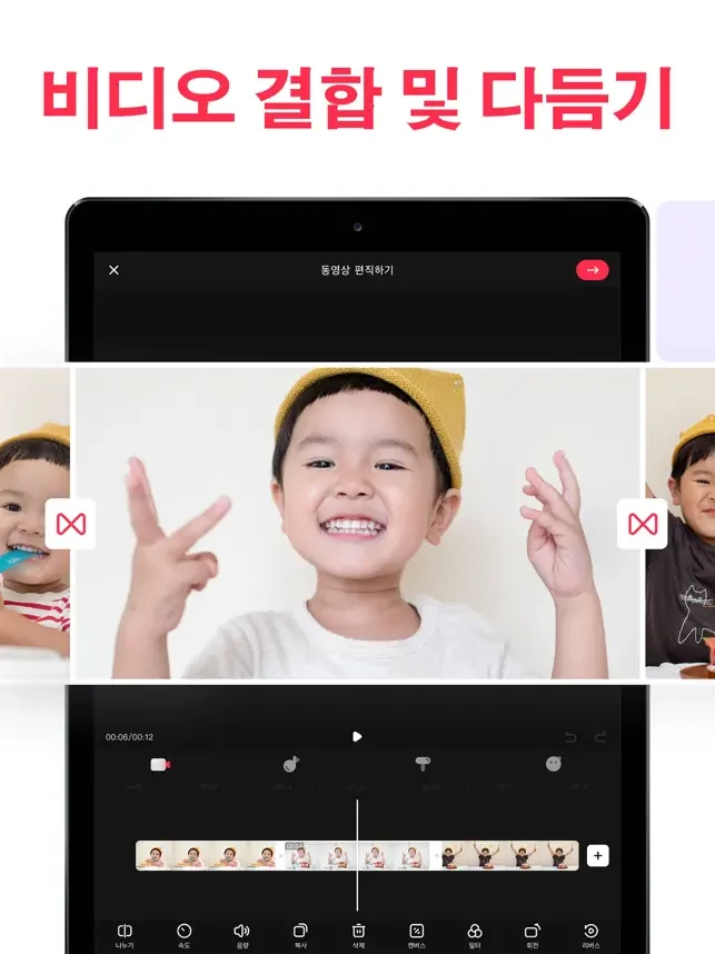 + 그외에도 배속, 리버스, 자르기, 영상 순서 변경, PIP 추가 등 주요 영상 편집 기능을 모두 사용할 수 있습니다.