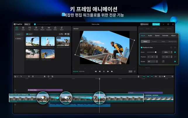 캡컷은 사용하기 쉬운 동영상 편집 기능, 무료 인앱 글꼴 및 편집효과, 키프레임 애니메이션, 부드러운 슬로우 모션, 크로마 키, 손떨림 보정 등 무료 고급 기능을 제공하여 순간을 포착하고 캡처할 수 있도록 도와줍니다.