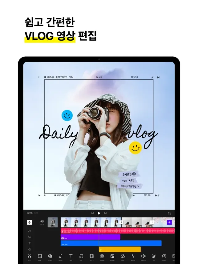 다양한 자막, 음악, 템플릿으로 누구나 쉽게 트렌디한 vlog를 편집할 수 있어요.
