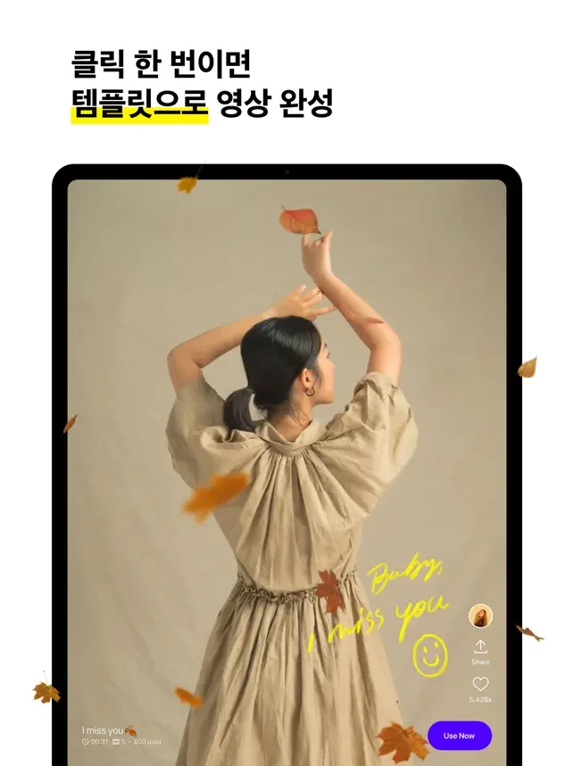 자동 캡션, 음성 변환, 모션 추적 및 배경 제거등 독특한 기능으로 멋진 동영상을 만들 수 있습니다. TikTok, YouTube, Instagram, WhatsApp, Facebook에서 자신의 개성을 보여주고 바이럴 하세요!