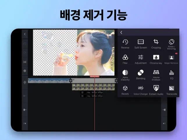 • 크로마 키를 사용하여 동영상에서 특정 색상을 제거합니다. 멀티트랙 타임라인에서 쉽게 클립을 정렬하고 미리 볼 수 있습니다.
