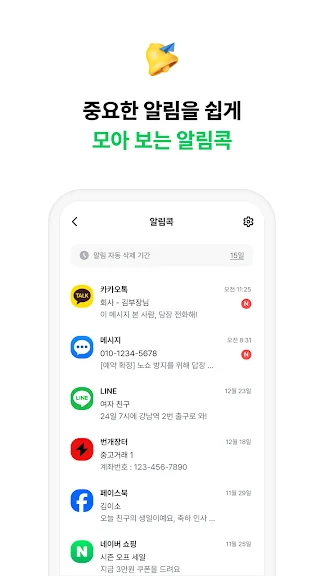 중요한 알림 쉽게 모아 보고 싶다면? 나도 모르게 삭제한 알림, 놓친 알림을 다시 볼 수 있어요.