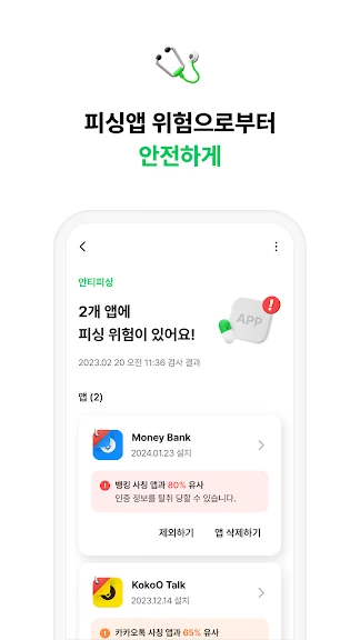 • 스마트폰의 보안 상태를 정기 점검하여 안전한 모바일 보안 환경을 유지할 수 있어요.