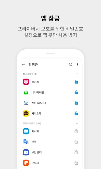 SNS, 메신저, 메모장과 같이 개인정보가 담겨 사생활 보호가 필요한 앱은 별도의 비밀번호를 설정해 더욱 안전하게 관리하세요!