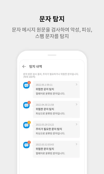• 문자 메시지를 검사해 악성, 피싱, 스팸 메시지인지 알려드려요.