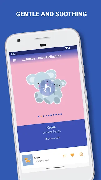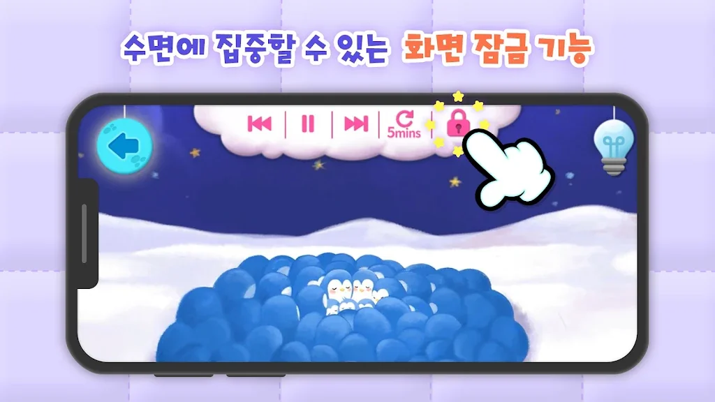 자장가 앱은 최소한의 배터리 전력을 사용하며 휴대전화 화면이 꺼져 있어도 재생할 수 있어 아기에게 평화로운 환경을 보장합니다. 또한, 취침 시간은 긴장을 풀기 위한 시간이라는 것을 잘 알고 있기 때문에 아기용 앱은 자녀를 과도하게 자극하지 않는 흐릿한 수면 유도 사진을 제공합니다. 우리는 이것이 취침 시간 동안 유아에게 특히 중요하다는 것을 알고 있습니다.
