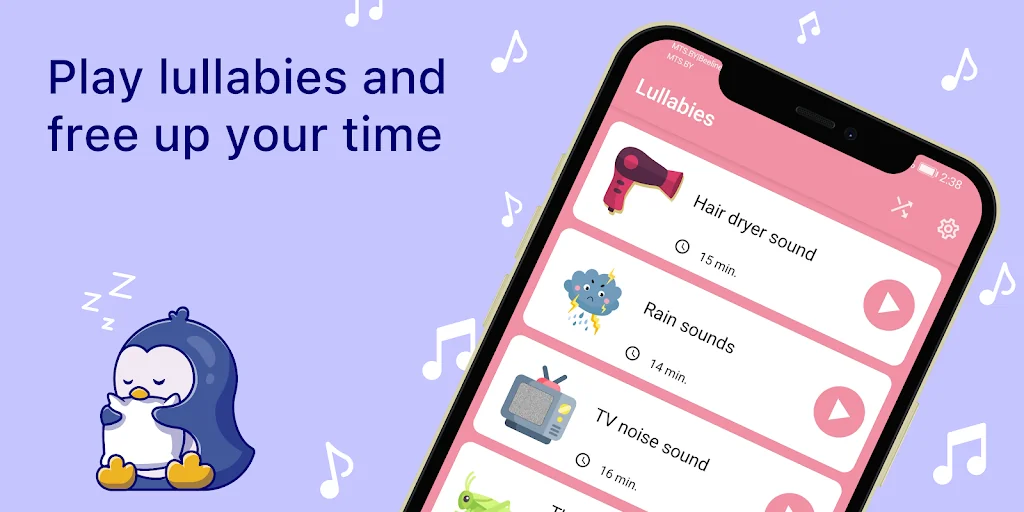 광고 없는 앱은 자녀의 필요를 염두에 두고 설계되었습니다. 자장가는 자녀가 잠들도록 진정시키고 음악에 대한 민감성을 자극하는 데 도움이 됩니다.