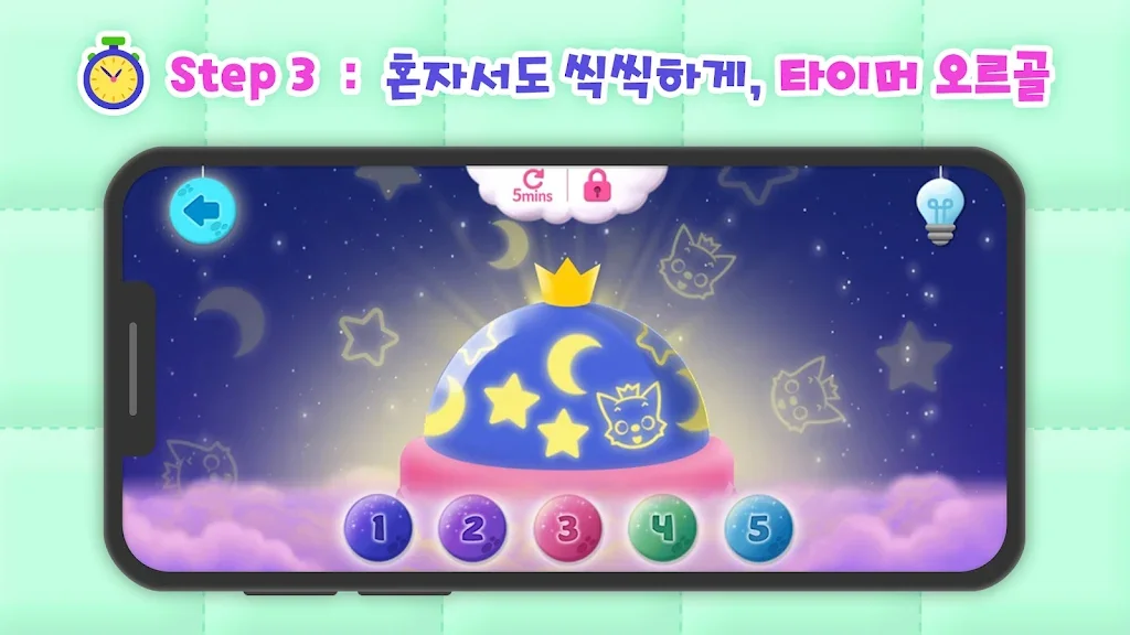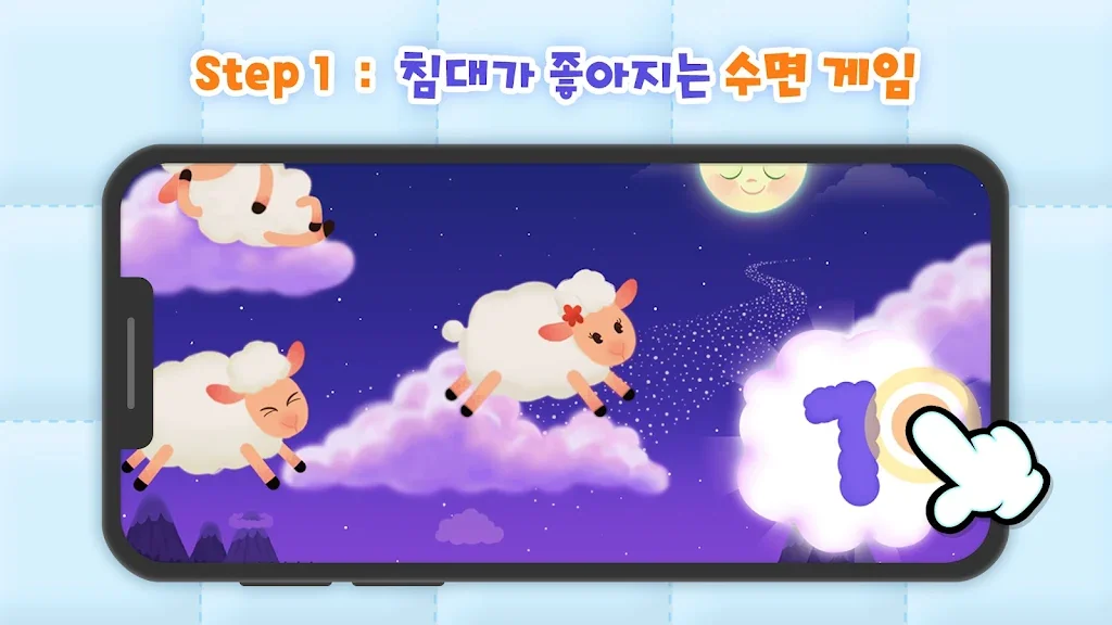 아이가 고요하게 잠들 수 있도록 도와줄 유아 클래식 음악부터 무드등 멜로디, 양 세기 게임 등이 준비되어있어요.
