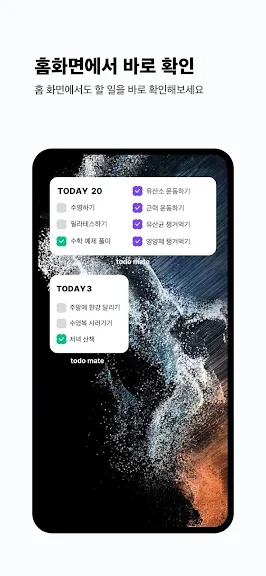 홈스크린에 위젯을 추가하여 할일에 더 쉽게 접근할 수 있습니다. 다양한 위젯을 제공하여 개인이 선호하는 것을 선택할 수 있습니다.