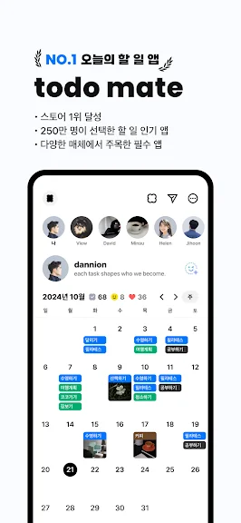 투두메이트와 함께 오늘 있었던 일을 쉽고 예쁘게 기록해봐요!
