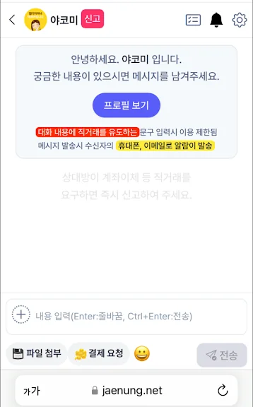 당근 내 채팅으로 자유로운 채팅이 가능해요. 자유로운 채팅인 만큼 안전을 위해 최선을 다하고 있어요.