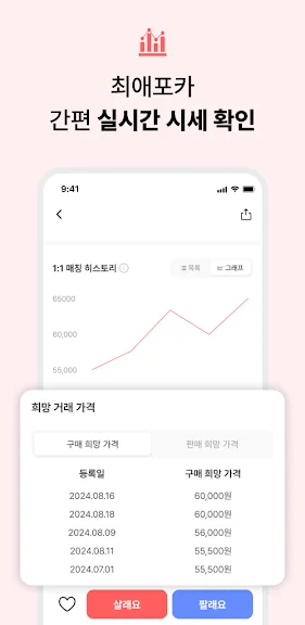 - 포카마켓이 원하는 가격의 거래 상대방을 찾아서 매칭해드려요:)
