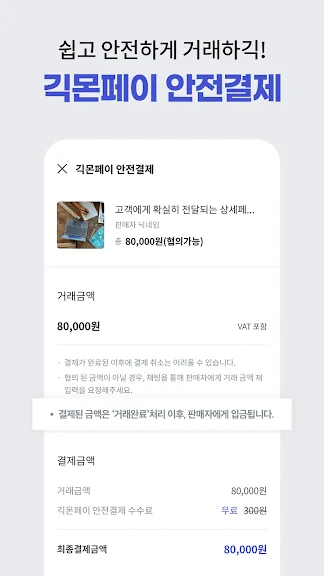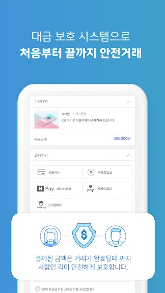 - 다양한 결제 수단 및 안전 거래 에스크로 시스템