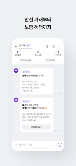 • 선 결제한 금액을 숨고에서 보관하고, 서비스 완료 후 고객이 거래를 확정하면