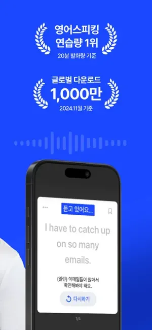 AI 실시간 음성인식으로 배운 단어와 문장을 암기하지 않고도 술술 나올 때까지 무제한 영어 스피킹!
