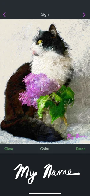 • 그림에 서명을 넣어, 나만의 작품으로 만들 수 있습니다