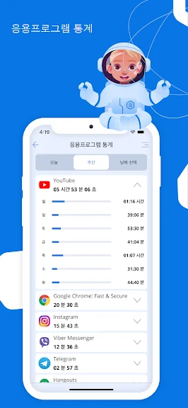 • 모바일 응용프로그램 사용 통계 (스크린 타임)