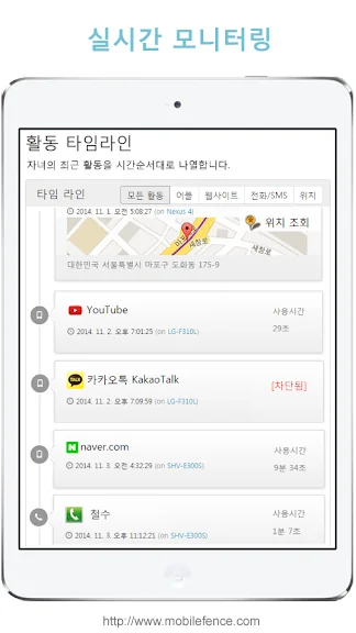 모바일펜스 - 자녀 스마트폰 관리 어플에 대한 스크린샷 정보가 필요하시다면 아래 이미지를 참고하시기 바랍니다.