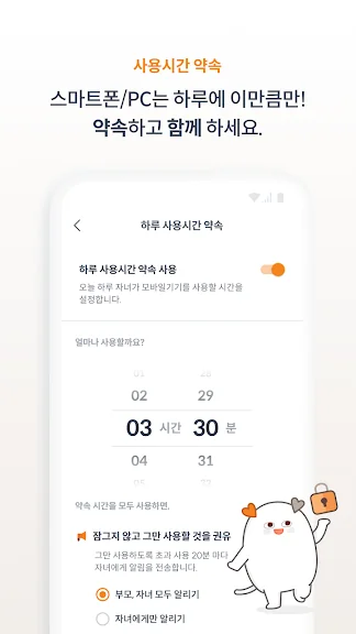 하루 사용시간 약속으로 스마트폰 사용시간을 조절해주세요.